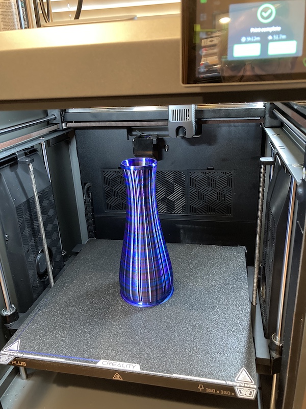 The tall blue vase has been printed in the K2+ and is 25CM tall. At the max limit for the K1C. Too close for my comfort in the K1C but no issue with The K2+.