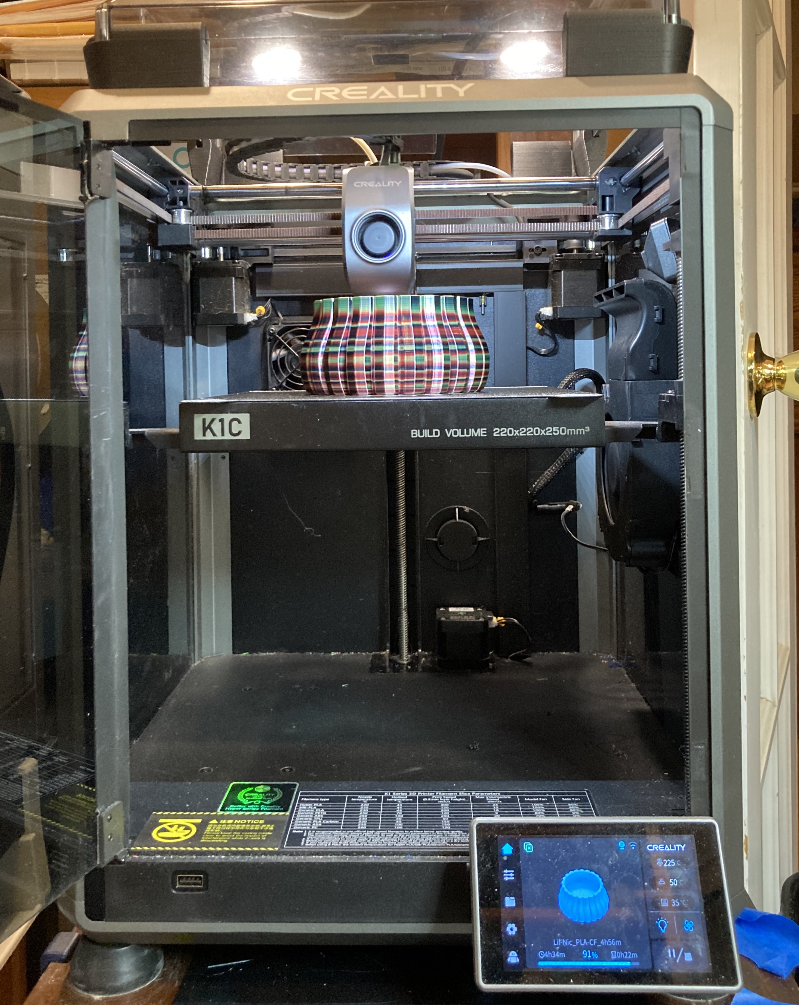 I have two Creality brand 3D printers in my studio. The first is the K1C with a 220 x 220 x 250 (XYZ) build area. The second is the K2Plus (K2+) with 350 x 350 x 350 build volume.